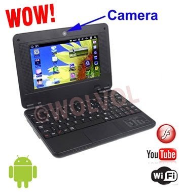 WolVol BLACK NETBOOK Built-in Camera 7" MINI LAPTOP Notebook Netbook PC Google Android 2.2 Computer WiFi Internet 3 USB Ports YouTube Facebook and TONS of Free Android Apps & Games 4gb HD 256mb Ram 2-4HR Battery Life (INCLUDES: Velvet Pouch Case, Charger, Mini Optical Mouse) Review